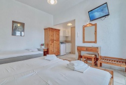 On the Greek island of Antiparos in the Cyclades, Pavlos Place is a neat welcoming, family-run hotel with double, triple, and two-bedroom apartments that can accommodate up to five guests. Additionally, it is a typical Greek restaurant with a wide range of Greek tastes and other foods that are unique to the island, all of which are prepared and served by the family in a welcoming environment. The owners of Pavlos Place will give you a warm welcome as if you were a part of their own family and would be happy to assist you in planning the vacation of your dreams in Antiparos. Pavlos’ rooms follow the local style featuring blue and white colours. They come with a flat-screen TV, mini fridge and electric kettle and they all have an en-suite bathroom with free toiletries.