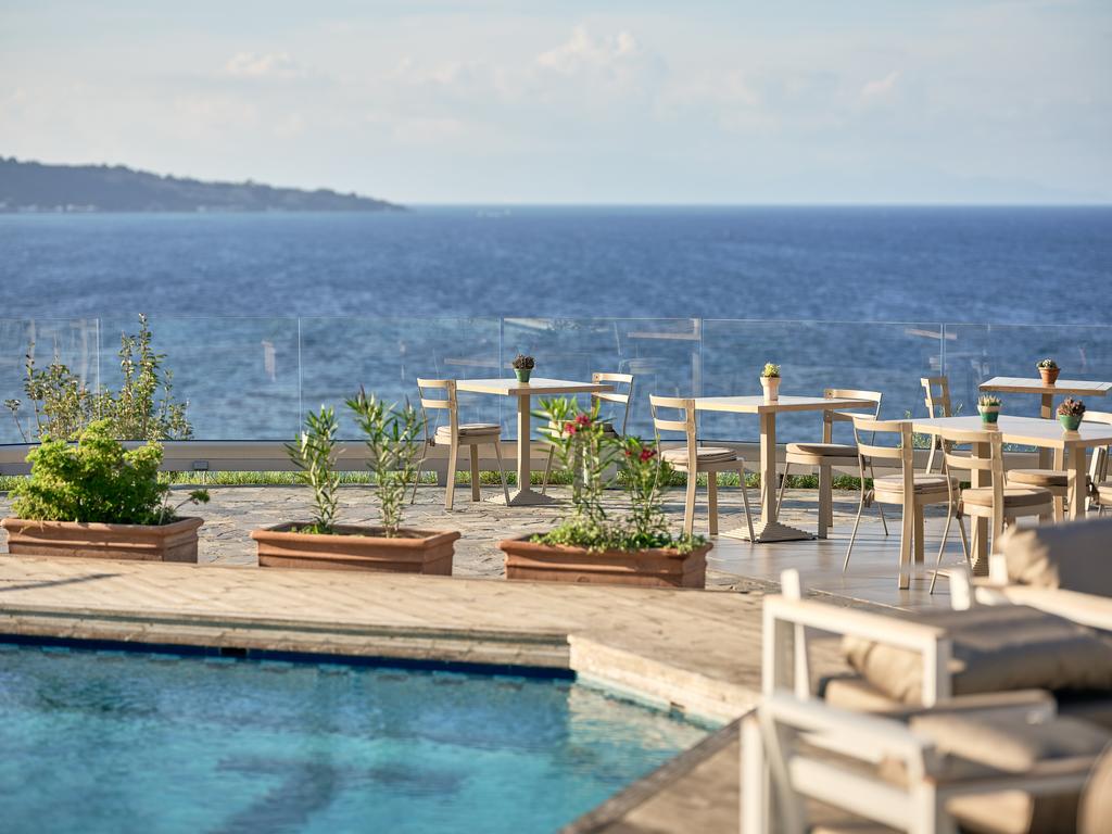 Couples and small or large groups will find the accommodations excellent (primarily chosen by adults). The Ionian Hill has comfortable, elegantly furnished rooms that provide a welcoming ambiance and a pleasant setting to leave you with unforgettable experiences. The 28 exceptional and deluxe boutique-style rooms are arranged over three stories for the convenience of the guests. With a patio or balcony offering expansive views, the majority of these face the hotel's front, which houses the restaurant, bar, and swimming pool. The remainder offer views of the building's surrounding garden. Breakfast is served every morning to start the day. Take a dip in the swimming pool, hang out at the bar with a few cocktails, or just unwind on your balcony with the Ionian Sea "on a plate."