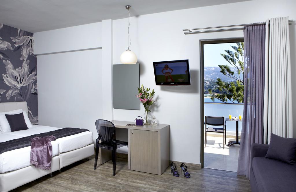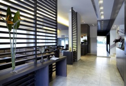The Mouikis Hotel is situated in Kefalonia Island's main town of Argostoli. The hotel is now a real haven of hospitality thanks to the extensive restoration that was finished in April 2011. A minimalist, cozy, and refined ambiance is produced by the new fixtures and fittings in addition to the updated amenities and conveniences. Elegant and contemporary rooms and suites at the Mouikis Hotel Kefalonia provide views of the city or the sea that transport guests back to more passionate eras. Room amenities include aircondition, bathroom with toiletries, hairdryer, TV, mini fridge, kettle, telephone wifi and balcony. You will not miss the interesting hotels facilities for your leisure including, roof top lounge bar, gym, massage room and a spa center. With its stores and vibrant port area, Argostoli, the capital of Kefalonia, serves as the hub of activity for the entire island. Overlooking Koutavos Lagoon, Argostoli is encircled by lovely hills and Mediterranean greenery. While staying at the Mouikis Hotel in Kefalonia, you will be astounded by the stunning sea view right in the center of Argostoli.