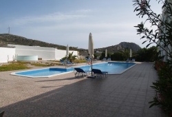 The Athena Pallace Hotel is situated in one of the nicest spots on the island, next to the historic Arkesia Acropolis. A collection of recently constructed lodging units is located adjacent to the sandy and pebbly beach on Arkassa, Karpathos Island. This Karpathos hotel has two stories with spacious apartments that can accommodate four to five people, all centered around an amazing swimming pool. There are fourteen completely furnished apartments with separate balconies that overlook the open sea and the swimming pool available for your use. The apartments have a living space with a sofa bed, a fully functional kitchen with a small oven, all the necessary cookware, a kettle, a coffee maker, and a refrigerator. Additionally, each of the apartments has a separate bedroom with a double or single bed, air conditioning, and a private bathroom with a shower.