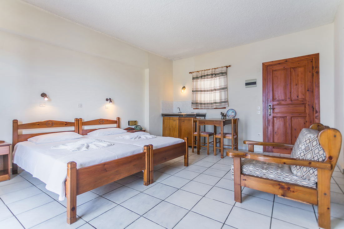 Yiannis Hotel is located in Karpathos, only 800m from the beach in Arkassa village. This Karpathos hotel offers double, triple, and apartment accommodations, with a total of 12 studios and 7 apartments (four beds). A self -catering accommodation featuring a kitchenette with refrigerator. Each opens out to a balcony and has a private bathroom with shower. There is a swimming pool outdoors to relax and admire the views of the Aegean Sea. You will surely enjoy your vacation in a friendly atmosphere with a panoramic sea view of the beautiful village of Arkassa. Situated in the southwest region of Karpathos, Arkassa is a relaxed, traditional village complete with restaurants, supermarkets, pharmacies, and local stores.