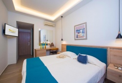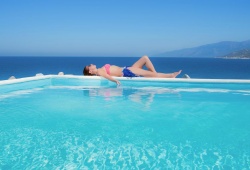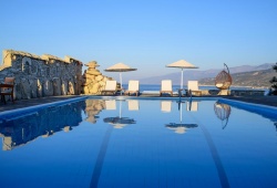 With a breathtaking view of the surrounding islands and the archipelago, the Cavos Bay Hotel in Ikaria is ideally situated on the edge of one of Armenistis Bay's most picturesque sea-beaten rocky cliffs. The Ikarian hotel blends in well with the surrounding scenery. Bright and spacious the rooms and studios are equipped with contemporary bathrooms, pleasant furniture, and sizable balconies or terraces with stunning views of the garden or the Ikaria sea. The two pools of Cavos Bay provide countless opportunities for leisure, and the bar is the ideal spot to enjoy cool beverages while you take in the breathtaking sunset. The Hellenic Chamber of Hotels has recognized the buffet-style breakfast as authentically serving a Greek morning meal.