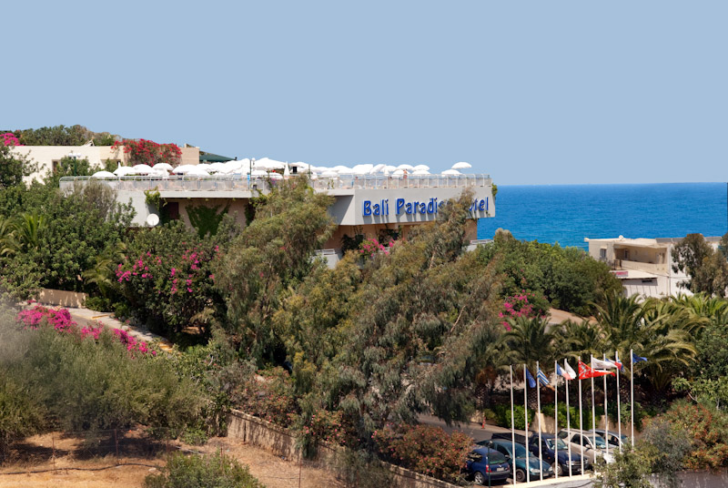The Bali Paradise, one of the most well-known hotels in the Rethymnon area, is situated on Crete's north coast in one of the island's greenest areas next to the port of Bali. It is just 30 miles from Rethymnon's Venetian port and 50 km from Heraklion's airport. The 235 renovated rooms are very cozy with beautiful decor, air-conditioned with satellite TV individually controlled, safe *, hairdryer, bathroom with shower or bath, telephone, balcony or terrace with sea views or the splendid gardens.