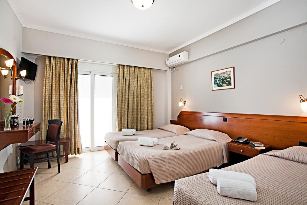 The hotel has 64 rooms with contemporary conveniences and provides warm, attentive service. The facilities of the room include an en suite bathroom with a shower, a hairdryer, and all necessary bath amenities, air-conditioning, free Wi-Fi, a kettle with coffee/tea facilities (upon request), a safety deposit box, a small fridge, and a telephone. Arkadi offers hotel facilities with authentic Cretan hospitality like 24-hour reception, and a rich breakfast buffet based on traditional Mediterranean cuisine.