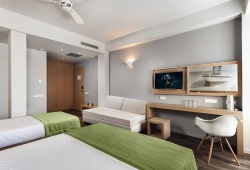 Kriti Hotel, a city hotel in Chania, on the island of Crete, is situated in the most privileged position. It is at the crossroads between the famous mediaeval Venetian city, a sandy beach, and the Market Square. Kriti rooms feature a satellite TV, minibar and wardrobe. They all have their own bathroom with hairdryer and bathtub or shower. Delicious food is available at the breakfast room's buffet-style menu or snack bar. Visitors may enjoy themselves in the TV room, play in the pool, or unwind in the hotel lobby. Additionally, a fitness center is offered.