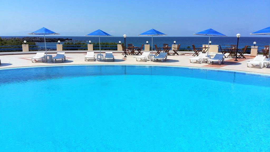 They are classically designed apartments and studios with views of the Cretan Sea. Every apartment features a fully furnished kitchenette that includes a refrigerator and microwave in addition to an LCD satellite TV. There's an iron, a hair dryer, and a safe. A fireplace is another element of the units. A Mediterranean dinner made with fresh ingredients may be enjoyed at the poolside bar-restaurant with views of the sea, or guests can unwind on the sun loungers by the pool and enjoy a refreshing beverage. Smaller visitors can have fun in the children's pool, and there are periodically special occasions where traditional Cretan dance is held in the pool area. There's also an outdoor chess board supplied.