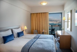 Chios Chandris is the ideal location to stay on the island thanks to its 148 cozy and elegantly furnished rooms and suites, which include large balconies with unhindered panoramic views of the Aegean Sea or the harbor of Chios Town, a comprehensive range of high-end facilities, and attentive services. Each room has a minibar, air conditioning, a safe, and a view of the harbor or pool. In addition, there is a TV and a bathroom with a hair dryer, shower cabin, and complimentary amenities. The restaurant Chios Chandris serves buffet breakfast and dinner. There is a bar serving beverages and cocktails to guests for relaxing moments. Wifi access is covered throughout the property and parking is available for your private or rental car.