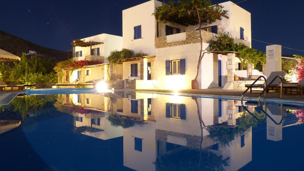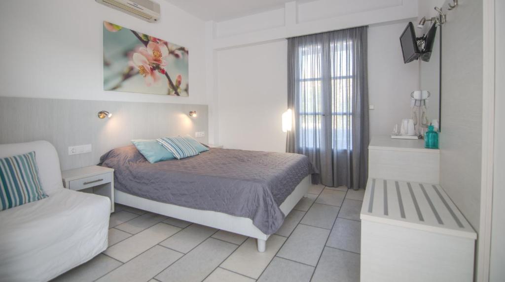 Located in the serene Kampos Valley, just a short stroll from Yialos Beach and Ios Island Port, the Brothers Hotel provides comfort and quality to make your time here unforgettable. The welcoming rooms at the Brothers Hotel in Ios are designed to satisfy visitors looking for an inexpensive hotel in Ios.Families hoping to see the amazing beaches and sights, groups of friends seeking a friendly gathering spot, business travelers seeking a peaceful vacation spot, and Ios' youngest visitors hoping to explore and party in the island's famous bars and clubs. The rooms come with a kettle, while certain rooms have a kitchen with a stovetop. There is also a flat-screen TV, a bathroom with free toiletries, and a balcony for the views. Enjoy the outdoor swimming pool with wireless internet covered throughout the property. Breakfast is served every morning for you to start the day. There are cafes, restaurants, and bars within walking distance of the Brothers hotel. Yialos is the starting point for several walking trails. From here, there are paths to the isolated sandy beaches of Skarkos Hill, Kolitsani, Valmas, Tzamaria, and Koumbara. The property is 2 kilometers from the Ios port.