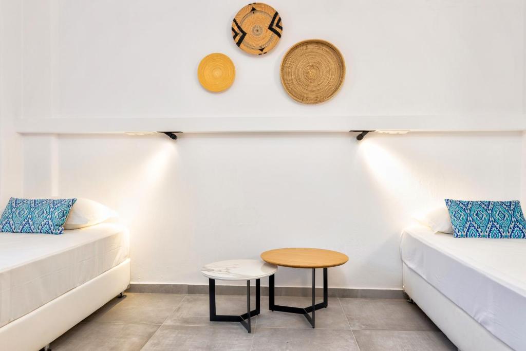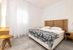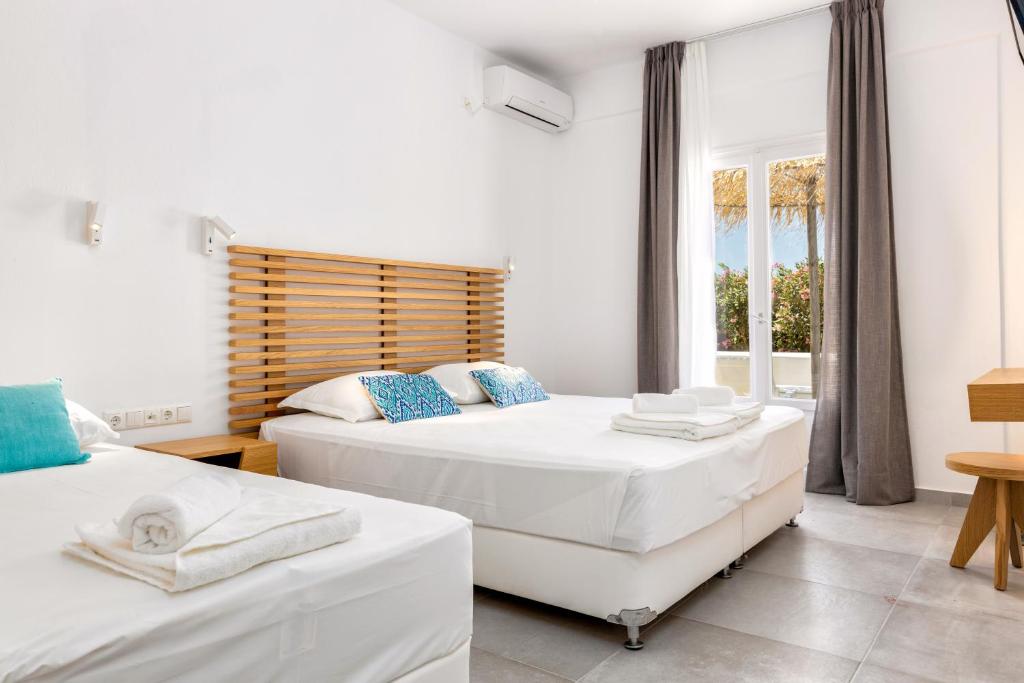 The minimalistically designed Golden Beach Hotel in Paros offers thirty contemporary rooms and suites overlooking the sea. Its sole function, albeit it is cozy and comfy, is to facilitate daily living by the sea! Every room has a fully functional bathroom with a shower and is furnished with simple wooden furnishings. There is a private balcony accessible from every room.
