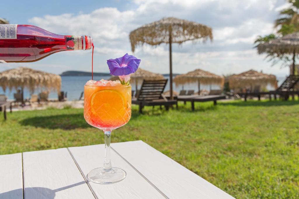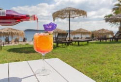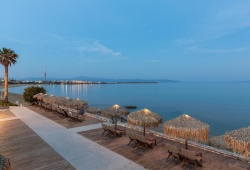 The hotel's restaurant serves light fare, coffee, cocktails, and lunch or supper by the sea all day long. The restaurant serves Greek and Mediterranean cuisine. Not to add the beach bar open all day for unique beverages and cocktails