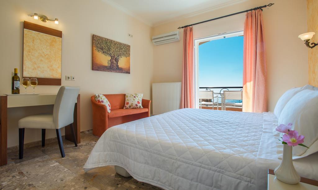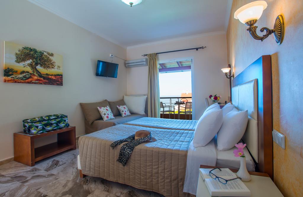 Each of the rooms is equipped with all the modern facilities, such as air condition, telephone, free Wi-Fi, hairdryer and satellite TV. One of the best features of Philoxenia hotel is the huge pool. Relax by the pool, soaking in the gorgeous view of the mountains and sea, or enjoying a delectable cocktail at the pool bar—which is located right within the pool. A breakfast is served every morning at the restaurant and is included in the room rate.