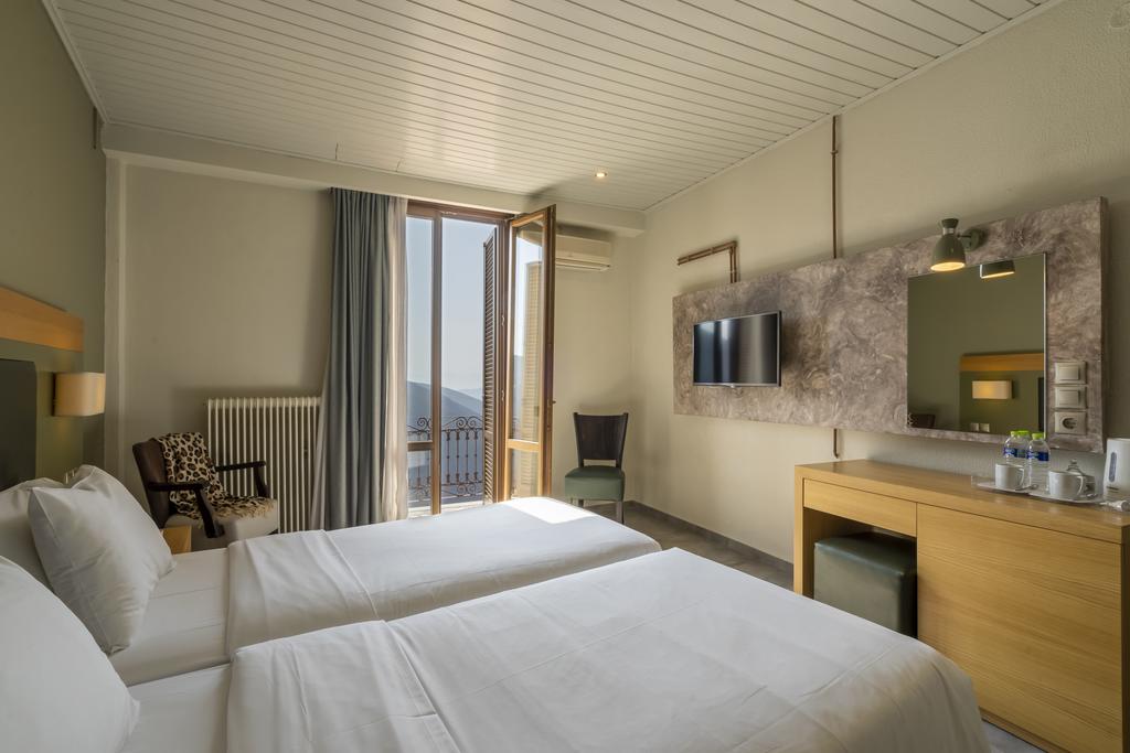 Delphi, often known as the "navel of the earth," is where you'll find the Kastalia Boutique Hotel. The accommodation's location is excellent because it is only a five-minute walk from the ancient sites and the Delphi Ancient Museum. The twenty-four (24) completely furnished rooms at the Kastalia Boutique Hotel are prepared to host and meet the demands of each guest. All of the rooms, which have views of the sea and the Delphi valley and are furnished in either a modern or traditional style, are peaceful and serene, adding to the good vibes that a guest gets from this special, holy location.