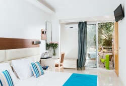 Classical furnishings and balconies with views of the garden or the sea are features of the rooms. Each has a refrigerator and a satellite TV. There are sitting areas in some apartments. Guests are provided with a handy smartphone with unlimited data and calling capabilities. Akti Olous Beach hotel hassmall private beach, a rooftop pool overlooking the Cretan Sea where you may have breakfast. Greek, Cretan and International cuisines are served at the waterfront restaurant Blue Sea.