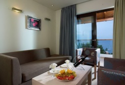 There are 85 rooms at the Elounda Ilion Hotel, consisting of 11 suites, 37 apartments, 9 bungalows, and 28 Superior rooms and Bungalows. Most rooms have a shower, free satellite TV, air conditioning, music, a refrigerator, a safe, a hairdryer, and a view of the sea. There is a breakfast and dinner buffet available at the main restaurant. A large selection of Greek-inspired meals are available at the buffet. Naturally occurring Cretan products are used in the preparation of all recipes, together with the world-famous Cretan olive oil—a staple of the Mediterranean diet.