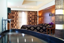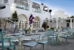 Aressana Spa Hotel and Suites combines tradition with sophistication and family hospitality with professional service, guaranteed to satisfy the most discerning guest. Centrally located in the original part of Fira, the capital of Santorini Island, in a quiet corner of this lively town, between the Greek Orthodox Cathedral and the unique Museum of Prehistoric Thera. This family-owned Santorini hotel offers its visitors a tranquil retreat complete with spa services and an outdoor swimming area. A part of the Small Luxury Hotels of the World is the Aressana Spa Hotel & Suites. The hotel's Tefsion Kallos Spa offers beauty and relaxation therapies to its guests. On the premises is a luxurious fitness facility as well. A Greek breakfast buffet with traditional and Santorinian specialties is offered next to the swimming pool. The poolside snack bar offers light Santorinian and international cuisine, cold beverages, and cocktails while shielding guests from the Greek heat. Aressana Spa Hotel in Santorini is within walking distance of restaurants, boutiques, galleries, the central bus and taxi station, and exciting nightlife of Fira. Literally a few steps beyond the hotel entrance is the caldera rim, offering magnificent views of the cliff face and the volcano, especially at sunset.