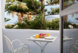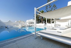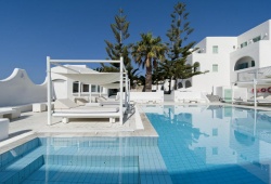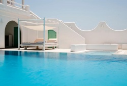 Situated in the centre of Fira, just a short distance from the Caldera views, charming cafés and boutiques, is the Hotel Daedalus, one of the best accommodations in Santorini. The hotel provides warm hospitality centred on personalised care in a delightfully laid-back setting, together with a host of additional amenities that you will find enjoyable. The rooms are comfy and attractive at the same time. The surroundings is considered in the design of each space. Daedalus Hotel rooms have all latest conveniences like a satellite LCD TV, telephone-in-the-room, free WiFi, safe box and more, making sure that you are going to have the most comfortable stay at this Santorini Hotel. Take a refreshing plunge in the Daedalus Hotel pool to start your day. Take a dip in the turquoise pool's pristine, pure water and unwind on the loungers or sunbeds before beginning your exploration of Santorini. There is a pool bar close to the complex where you can enjoy a selection of drinks and snacks while basking in the sun.