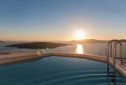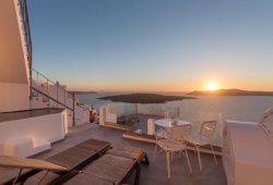 A fantastic view of the Caldera Sea Lake, the volcano, and the renowned Santorini sunset can be found at Hotel Villa Renos in Fira, which is perched above the island's well-known cliffs! Following the most recent renovation, which went from a 3 star to a 4 star hotel, one of the first hotels in Santorini is prepared to greet you. The Villa Renos hotel is situated in the historic and traditional Fira town settlement, close to banks, a typical market, shops, museums and all forms of transportation. All rooms have large balconies that overlook the volcano and the renowned Santorini sunset. Both the standard and deluxe double rooms have every amenity you may need. Deluxe room also offers indoor or outdoor jacuzzi. Learn about the top activities in Fira, the capital of the gorgeous Greek island of Santorini, including boat trips, local cuisine, and wine tastings, in addition to sunset views and whitewashed churches.