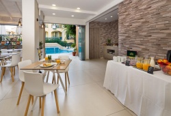 The Romantica Hotel enjoys a privilege location in the centre of Georgioupoli, just 300m away from the 1,5 km long sandy beach of the village. With its 43 cozy rooms spread across three distinct blocks, the hotel stands tall and proud. They come with air condition, fridge, telephone, private bathroom with shower, hair dryer and kettle. A breakfast area, a swimming pool with a separate children's pool, a bibliotheca, a newspaper kiosk, and a lobby with a 24-hour reception are all located in the first block.