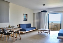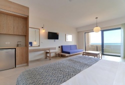 The four-star Silver Beach All-Inclusive Hotel in Gerani is located next to the sea in a serene, tranquil area. The Cretan Sea is seen from the hotel's deck. It is ideally located at the northeastern border of Chania, not far from the vibrant town of Platanias. For anyone looking to have a relaxing vacation, families and couples will find the hotel's location excellent. The spacious, light-filled air-conditioned rooms at Silver Beach include views of the sea, the pool, or the hotel grounds. Every one of them has a fridge, TV, safe, and free internet connection.