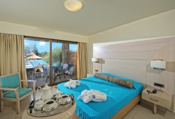 A large complex along the Gouves beach is the Aphrodite Beach Hotel located 18 kilometers from Heraklion. A large Cretan family runs it, and they make an effort to teach its visitors about Cretan culture and what makes Crete unique. Numerous stores, classic restaurants, and taverns can be found in the town of Gouves. Perfect resort for anybody who wants to explore Crete by bus or car rental, located in the middle of the island. The rooms feature a minibar, cable TV and a safe. You can find a shower and a hairdryer inside the bathrooms. Visitors may enjoy breakfast, lunch or dinner at the restaurant. You may also take care of your self with a massage, work out at the gym or visit the beauty care salon with an extra charge. Head for a swim and relax at the large outdoor swimming pool of the hotel. Take a stroll and wander around the Gouves area for shopping and tasting the best of Greek food. Aphrodite Beach Hotel is only 7 kilometers away from Hersonissos, a town known for its nightlife. Other places of interest near the hotel are CretAquarium Thalassocosmos and Star Beach Water Park.