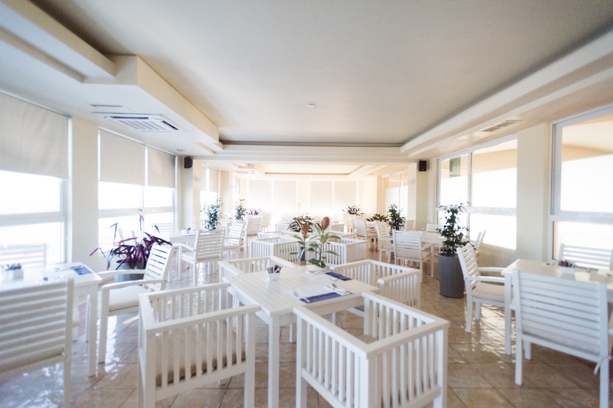 Gardens with palms, banana trees and local flora, Spacious parking space (free of charge), Free parasols and umbrellas at the pools, 2 sea water swimming pools, 1 children’s swimming pool with salty water and 3 big water slides, Gym (All guests must be at least 12 years of age. Any guest under 18 years of age must be accompanied by their parent or legal guardian.), Free luggage storage, Mini market with tobacco and small gifts, Fully equipped Conference Center Spa with large variety of treatments, hammam and sauna, Free pool towels available, Wireless access to the Internet from all public spaces, Free of charge Internet use inside the rooms, Free of charge safety box in the rooms, Baby sitting, upon appointment, Taxi-limousine service, Car rental, Laundry & dry cleaning service, Ballroom and a large outdoor area for weddings and events, Little chapel.