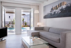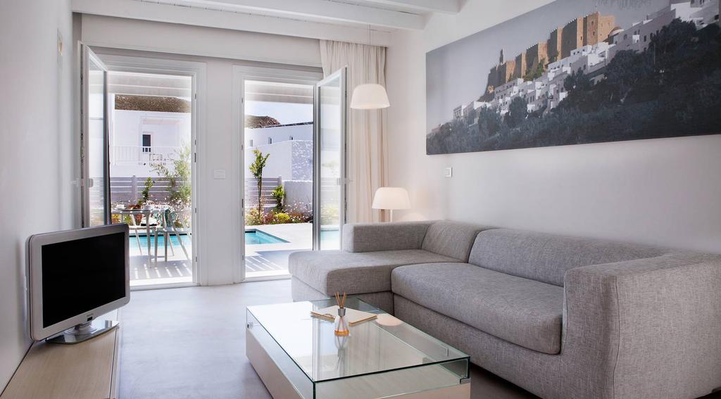 This 5-star luxury hotel is situated right on Grikos Beach in Patmos. The Patmos Aktis Suites & Spa offers spa and fitness facilities, as well as fine dining in a unique seafront setting. All 56 rooms and suites are located near the beach and offer a fascinating view. Free Wi-Fi, a minibar, and LCD TVs in the living room and bedroom are among the amenities offered in the rooms. There are free beach towels available. Every day at the dining area, guests may begin their day with a Greek breakfast. The excellent Mediterranean cuisine of Cielo e Mare Restaurant is made using local, fresh ingredients. With views of the sea and a laid-back vibe, Cielo All Day Bar serves beverages and cocktails. Private pools, free parking, and 24-hour room service, spa and fitness facilities, are available. Patmos Aktis Suites & Spa also features a conference centre. Convenience and comfort makes Patmos Aktis Suites & Spa Hotel the perfect choice for your stay in Patmos.