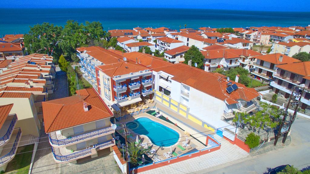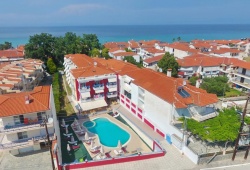 The Summer Dream Hotel is situated in Polihrono, Halkidiki, 50 meters from the sea and features a parking space and swimming pool with jacuzzi. The Summer Dream Hotel's operational tenet is that discretion, hospitality, and simplicity are the hallmarks of luxury. The lodging ensures that visitors will have all they want for a comfortable, tranquil, and quiet stay by fusing affordable rates with first-rate amenities. It offers 24 double, triple, and two-room accommodations with fully furnished kitchens, air conditioning, TVs, WiFi, balconies, satellite receivers, and phones. Upon entering the hotel, guests may enjoy a pool area including cozy sun beds and umbrellas, as well as coffee, cocktails, and snacks.