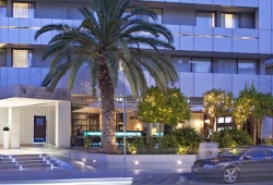 This five-star hotel has a huge freshwater pool, two fine dining restaurants, and a free wellness center. Elegant rooms include balconies overlooking the city and the pool. Fresh, regional ingredients are used to produce the American buffet breakfast at Vetri Restaurant, which also offers Cretan cuisine. Per Se Lounge serves wine, drinks, and snacks. The Galaxy Hotel hosts a live music event every Friday from May through October. There is a large conference room for meeting and other events and can accommodate up to 1000 people.