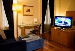 The "Plaza Café" is a laid-back, indoor café open all day that's perfect for eating breakfast, lunch, supper, or simply a cup of coffee while taking in views of the historic harbor. The perfect place to relax is "The Living Room" lounge, which is situated between the hotel's two atriums and has a library and a TV corner. Perched on the highest level, "The Megaron 5th" Bar Restaurant presents the most breathtaking views of the Aegean Sea and the historic Venetian harbor in the city.