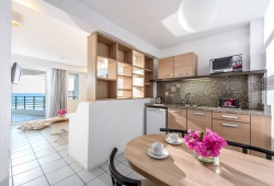 All of the cozy, contemporary rooms are nicely furnished and have views of the sea or the pool from the side. Every apartment is equipped with a Coco-Mat mattress. Play tennis with the family or take a dip in the Alia Beach Hotel by Estia's distinctively designed pool throughout the day.Benefit from your easy access to the designated beach by participating in the water sports offered there. In the evening, try your hand at karaoke and sip on a beverage at the hotel bar. At the beach, there is a fee for sunbeds and umbrellas.