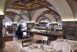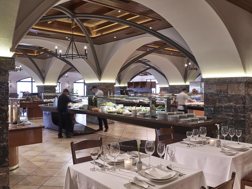 The all-inclusive program is available until 24:00, with world, Mediterranean, and Cretan cuisines available for eating. There are ten pubs, five snack areas, and seven restaurants on the premises. Features include themed evenings, romantic meals by the waterfront, and vegetarian, lactose, and gluten-free menus.