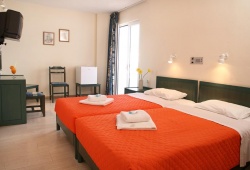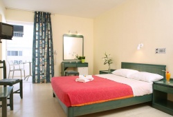 On the idyllic island of Crete, Evelyn Beach is situated on a sandy beach in a calm area of the popular town of Hersonissos. Excellent accommodation for families and couples, featuring 76 cozy twin and single rooms that provide a great starting point for exploring beautiful beaches and tranquil villages, as well as a variety of stores, restaurants, traditional taverns, exciting nightlife, and Hersonissos attractions. Rooms are pleasant with all the amenities needed for a comfortable stay.
