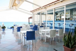 The hotel is situated directly on a lovely sandy beach with sun loungers and umbrellas (not private), and the hotel cafe bar serves refreshments to visitors on the beach. The guest has an incredible view of the eastern sea and the charming tiny harbor of Hersonissos while seated on the terrace of the café. Observing the sun emerge from the water in the early morning and set again in the evening will captivate you.