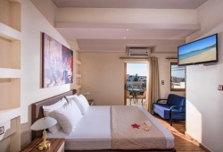 Hersonissos in Crete is the place to be and Harma Boutique Hotel the place to stay if you're searching for a warm and inviting hotel where you can have breakfast on a sunny patio, a refreshing beverage on the bar by the swimming pool, and a stroll down the beach. The hotel rooms are well decorated and provide a choice of city, side, or sea views. All 99 en suite accommodations have air conditioning, a private bathroom, and complete soundproofing. A refrigerator, coffee/tea facilities, and a 39-or 43-inch Smart LED TV are also included in each room's amenities.