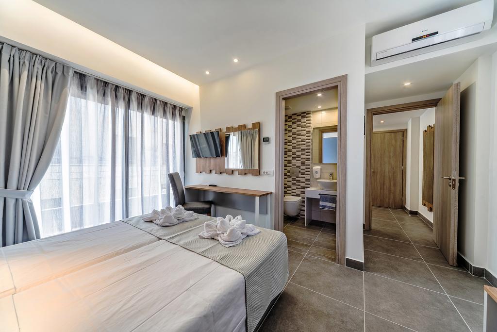 Pollis Hotel is currently one the most modern hotels in Hersonissos area, one of the most popular resort areas on Crete. The hotel is well situated near a number of well-known sights and only a short stroll from both public transportation and car rentals. The Polis Hotel offers accommodation with free WiFi available all around the property, as well as a garden and an outdoor pool that is open seasonally. This three-star hotel has a front desk open around-the-clock and luggage storage. Each and every hotel room has a coffee machine. Every room has a separate bath attached to it. The Pollis Hotel offers complimentary amenities and flat-screen TVs in each of its guest rooms. Every day there is breakfast available. The bar is located in the reception area and serves exotic cocktails, long drinks and coffee all day long.