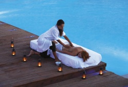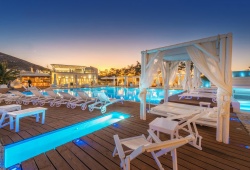 The 500 square meter huge swimming pool is located in the resort's center and offers visitors a great place to swim comfortably. Throughout the day, visitors may savor a selection of beverages and refreshing refreshments at the "Thalassa" pool bar and jacuzzi. Additionally, there is an extensive American-style buffet breakfast to start the day, and for supper, the gourmet restaurant "Pirotira" offers wonderful Greek delicacies and well-paired wines from the hotel's cellar. In addition, guests have access to hair salon services, manicures and pedicures, and make-up and styling on demand.