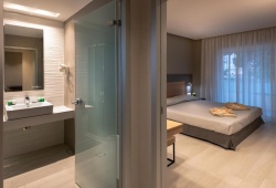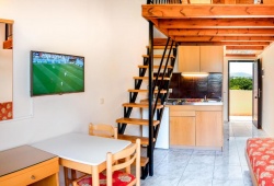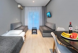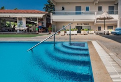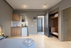 The rooms, studios and apartments are recommended for couples, individuals and families. They are fully equipped kitchen with cooking hobs, fridge, utensils and a dining table. Also there is a 32” flat screen tv, safe box, wifi and air condition. Every morning, a continental breakfast is provided in the dining area. A cool coffee or a fresh juice from the snack bar may be enjoyed by guests while they unwind on the sun loungers near the pool. Enjoy lunch or dinner at the on-site restaurant, which serves Mediterranean cuisine.