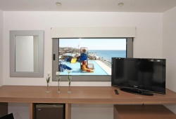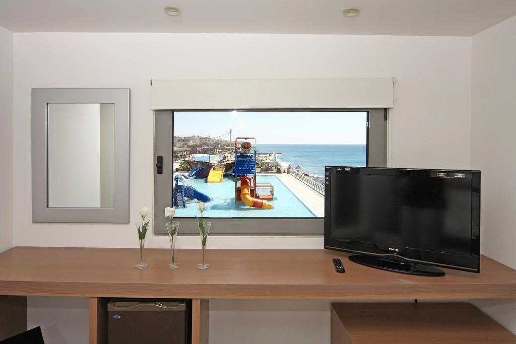 There are 223 roomy suites in Petra Mare, in four floors, most of which include a balcony overlooking the sea, air conditioning, a phone, satellite TV, music, a minibar, a safe deposit box, and roomy, pleasant bathrooms with hair dryers. The hotel offers its guests a number of amenities, such as a lobby, a space for internet access, three elevators, comfortable sitting areas, a hair salon, a gym, a sauna, a whirlpool bathtub, a mini-market, a massage parlor, a medical center, a game room with pool tables and arcade games, and a multipurpose room.