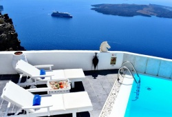 Daily flights from Athens International Airport and Blue Star Ferries from Piraeus Port provide transportation options to Santorini. Once you reach the port or airport, head toward Fira town, then continue on the same route for 2 km to Imerovigli instead of turning off. When you arrive at the main square of Imerovigli, which is across from the Nissi mini-market, turn left into the pedestrian path. After passing the windmill, you will discover the hotel's sign and a short set of stairs leading down to the pool, where the reception is located, about 80 meters away. You can reach Aeolos Art & Eco Suites in fifteen minutes by car, fifteen minutes by taxi, or forty minutes by bus to Fira town and then change buses to Imerovigli. Come and experience the beauty of Santorini.