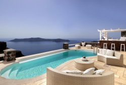 Tholos Luxury Hotel Resort is perched on the cliff of the Caldera in Imerovigli. The hotel will offer you accommodations of luxury and hospitality in a magnificent setting overlooking the volcano. Panoramic vistas of the crater, submerged in the deepest blue waters and sparkling under the bright sunlight, will leave you enchanted during the day, while the spectacular sunsets of Santorini that turn the landscape into a mélange of dreamy pictures will make your memories unforgettable.