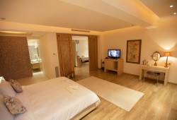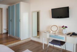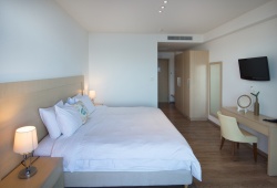 Each room has a minibar, safe, air conditioning, an work desk, satellite TV, a direct external line phone, voice mail, and free wifi internet. The marble bathrooms include with high-end amenities, vanity mirrors for facials, and hair dryers. Every accommodation has a sizable private balcony with an expansive view of the sea. There are three types of accommodations available to you: a Deluxe room, a Premium Deluxe room that can sleep up to three people, or an Executive suite that can sleep up to four people.