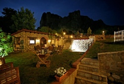 Guests staying at Epavlis Hotel & Suites will be in awe of the particular surroundings and the magnificence of nature. The boutique hotel has rooms that range in size from 32 to 42 square meters and can accommodate two to five people. Furnished with all the modern comforts, they provide views of the Pindos mountains, Kalambaka, and the Meteora. The rooms and suites of Hotel Epavlis have two balconies, LCD TVs, and hairdryers in the bathrooms. Some also come with satellite TV and a fireplace. Visitors to the Epavlis Suites Hotel may unwind in the on-site café by the fireplace or in the furnished garden against the stunning Meteora Rocks backdrop. The hotel's Kalambaka is a great place to stroll. The nearby traditional villages provide excellent tourist options. The town center is 600 meters away and has restaurants and cafés. The renowned monasteries of Meteora Rocks are located 1.9 kilometers distant. Experience the beauty of Kalambaka at the Epavlis Hotel & Suites and admire the great wonders of Meteora.