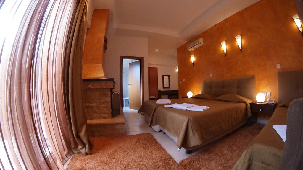 You are invited to the Ahilion hotel in Kalavryta, at a height of 750m and built in a quiet spot just 100 meters from the main square. Ahilion has 20 comfortable rooms (some of them have a fireplace) with all the amenities needed for a comfortable stay. They provide flat screen TVs, wireless internet, in-room safes, orthopedic pillows, and premium mattresses. Every room has a hairdryer, amenities in the bathroom, and a private hot shower that runs nonstop. One thing all the rooms at Ahilion hotel have in common is a cozy setting for unwinding, having fun, and sleeping. Traditional Greek breakfast is served daily and there is a lounge with a fireplace for your relaxing moments.