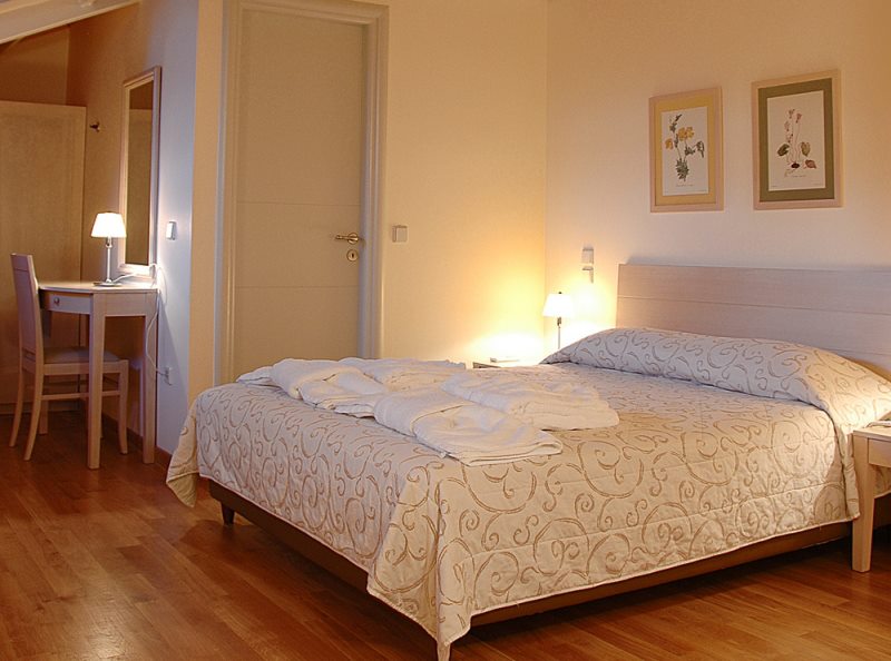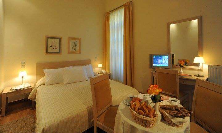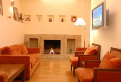 An architectural icon in Kalavryta, the Hotel Helmos is a historic structure that has seen its share of conflicts. It has two floors of twenty-eight contemporary rooms provide guests all the conveniences they need for a smooth stay. The rooms of Helmos come with air conditioning, bathroom w ith amenities, TV, kettle, fridge, Wifi and a balcony. In the sophisticated and cozy room Esperides on the hotel's ground floor, you may unwind while sipping coffee, a treat, or a snack by the fireplace. Meanwhile, the hotel bar "Neve Blu" awaits you for your evening excursions, serving you drinks and playing moody music.