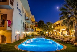The Kalyves Beach Hotel provides contemporary, roomy accommodations with superb views of the mountains, sea, or river. Air conditioning, a refrigerator, a hairdryer, and a satellite TV are provided in the rooms. Safety boxes can be purchased for an additional fee. The hotel's breakfast restaurant and the veranda, which is right next to the waterfront, both feature an American breakfast buffet. The ideal evening would include a romantic candlelit meal and a bottle of wine from Kalyves Beach's wine selection. If you'd rather have a casual meal or drink, the pool bar and beach bar are great places to have coffee, lunch, or other refreshments. if you are looking for the ideal accomomdation in Chania, Kalyves Beach Hotel is your best choice. Click the Book Now! button and compare rates offered by various online booking services.