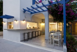 Situated at Kamari of Santorini, a short distance from the 2km Black Beach—one of the island's most pristine and well-manicured beaches with black sand—is the 3-star Hippocampus family hotel. Being an eco-friendly hotel, it has been granted the global eco-label, Green Key®. The distances are as follows: 3 km to the airport, 12 km to the port, and 9 km to Santorini's city, Fira.
