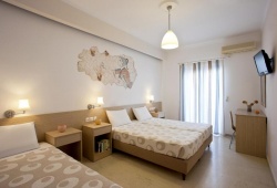 The rooms have tasteful furnishings, 2 m. eco-friendly anatomical beds with orthopaedic mattresses, and environmentally friendly air conditioners—all the result of a recent renovation. Every room at Hippocampus Hotel features a modern en suite bathroom and is furnished with everything you need for an enjoyable vacation. Each includes a modern en suite bathroom and is fully furnished with an LCD TV, hair dryer, safe, iron, and ironing board in addition to Wi-Fi. Every accommodation features a separate balcony with views of the gardens, the Kamari mountain, the sea, and the pool. Every day the rooms are cleaned, and every two days the linens are replaced. Breakfast is served daily to start the day and there is a swimming pool for your fun and relaxation.