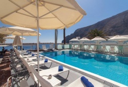 Situated on the well-known and sophisticated Kamari black beach on stunning Santorini Island, the Poseidon Beach Hotel is a typical family-run hotel that features the iconic architecture that has made it so well-known. Poseidon offers accommodations with light décor, basic furniture, and balconies, some of which have views of the sea. The hotel features a restaurant and an outdoor pool. Each unit has a safe, and some of them also have smart TVs.