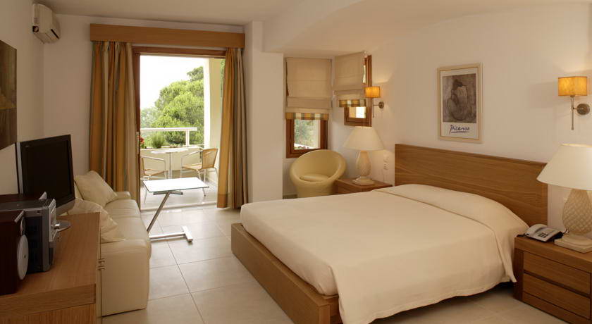 Kanapitsa Mare features modern, luxurious rooms, deluxe rooms, superior deluxe room as well as suites overlooking the Aegean Sea and the town of Skiathos. All rooms have modern furnishings, beautiful sea views (some rooms have mountain views), free Wi-Fi, satellite TV, safe, telephone, air conditioning, access to the gym. Guests of the hotel can enjoy the summer sun of Skiathos in the pool area. The hotel is covered for wireless internet access, as well as a TV corner.