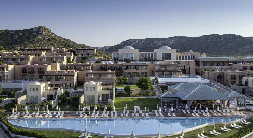 Helona Resort is a beautiful establishment located in Kardamena Kos with impressive architecture. Small buildings scattered in beautiful gardens, elegant domes, cobbled alleys, and natural materials such as stone, wood, and marble allow the entire complex to blend harmoniously with the surrounding peaceful landscape. Large windows and openings offer a fantastic view of the sunny Aegean Sea and lighten up all interior spaces. Twenty-one infinity pools enable water to flow from one to the other, inviting guests to dive into summer happiness. Helona Resort Kos Island has 238 rooms with patios and balconies, as well as convenient mini-fridges and bars. There are private bathrooms available in certain rooms. Among hotel facilities include a large swimming pool, restaurant, bar, beauty & spa canter, animation for guests and sport activities like tennis and water sports.